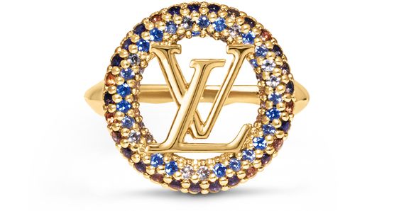Das Erbe in der Handwerkskunst und das Zusammenspiel funkelnder Farben verleihen dem Louise Trésor Ring einen Hauch mystischer Schönheit. Dabei setzen die in glänzendem, goldfarbenem Metall gehaltenen LV Initialen ein auffallendes Statement in dem charakteristischen Stil der Maison Louis Vuitton und werden von einem Kreis aus strahlend blauen Kristallen eingerahmt. Dieses edle Accessoire ergänzt sämtliche Looks um eine aufwendige Note voll glamouröser Raffinesse.