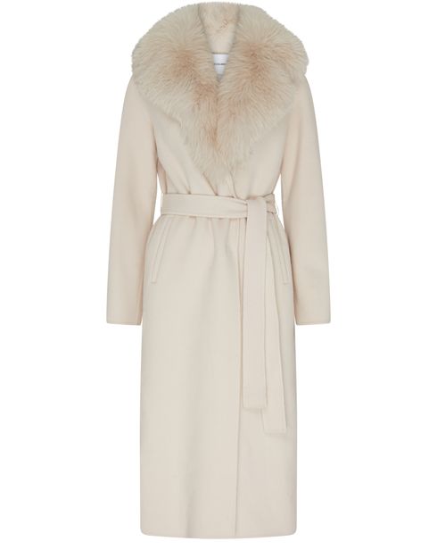 YVES SALOMONMantel aus Kaschmirwolle mit Gürtel, Kragen und Revers aus Fuchspelz