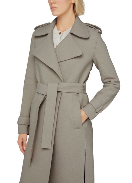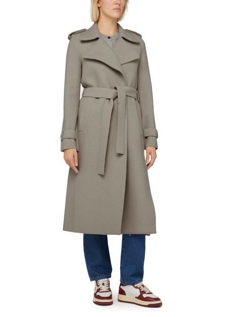 Beschreibung : Langer Mantel, gerader Schnitt, abnehmbarer Gürtel aus dem gleichen Material, reverskragen.