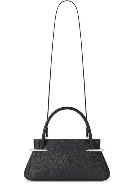 • Beschreibung : Schultertaschen, crossover-taschen, doppelgriffe, ledergriff, dünner trageriemen, genarbtes leder, silberfinish.
