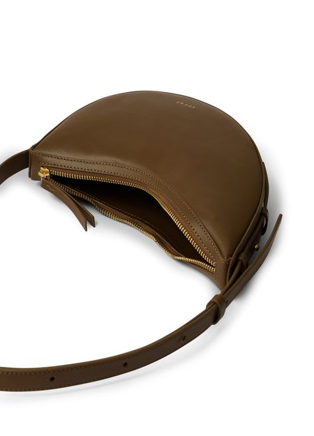 Genieße die Mini-Hobo-Tasche Wino von Soeur aus glattem Leder mit einem einzelnen Griff. Das goldfarbene Logo auf der Vorderseite und sichtbare Nähte setzen stilvolle Akzente, während Reißverschluss und ein Fach praktische Eleganz für den modernen Alltag bieten.