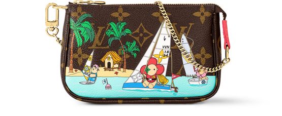 Im Rahmen der Winter 2023 Kollektion präsentiert sich die Mini Pochette Accessoires in Monogram Canvas mit ihrem exklusiven Motiv als eine Hommage an den Spaß am Sport. Dabei segelt Vivienne, das Maskottchen des Hauses Louis Vuitton, zusammen mit seinen Freunden vor einem tropischen Strand. Dieses Sammlerstück im Miniaturformat verfügt über ein strahlendes Innenfutter in Pink und eignet sich ideal als Geschenk.