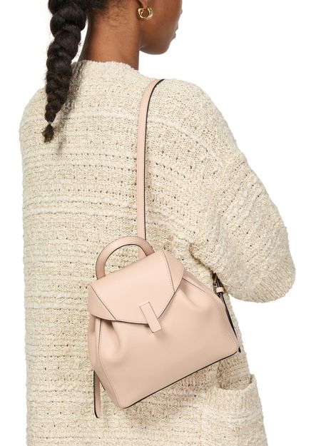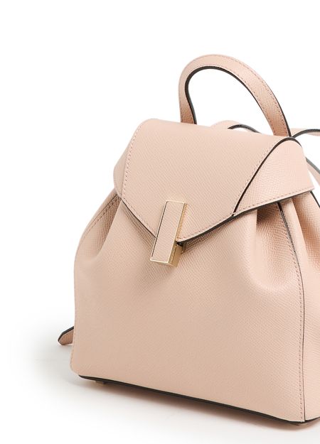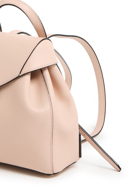 Erlebe den Mini-Rucksack Iside von Valextra mit seiner eleganten Klappenöffnung und einem einzelnen Fach. Dieser Rucksack, der stilvoll auf dem Rücken getragen wird, bietet verstellbare dünne Träger und doppelte Griffe, abgerundet durch sichtbare Ziernähte.