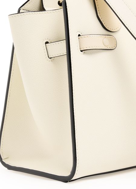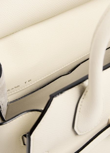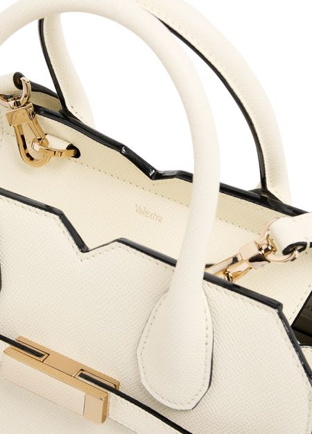 Entdecke Valextras Mini-Tasche Milano. Dieses Meisterwerk besticht durch goldene Akzente, doppelte Griffe, sichtbare Steppnähte und einen verstellbaren Riemen. Diese vielseitige Tasche kann sowohl in der Hand getragen, als auch crossbody mit dem dünnen Riemen getragen werden.