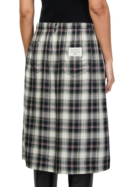 Genieße den karomuster-midi-rock von Acne Studios mit elastischer taille und aufgesetzten taschen für einen modernen Look. Das aufgedruckte logo und gürtelschlaufen setzen dezente Akzente. Vielseitig kombinierbar, begleitet er dich stilvoll vom Alltag bis in den Abend.
