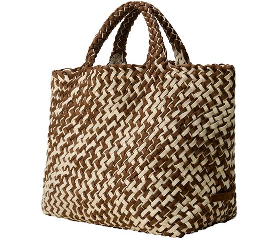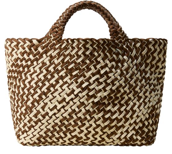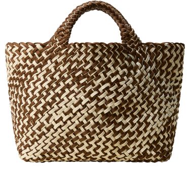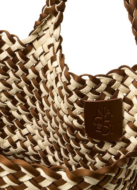 Entdecken Sie die Naghedi Schultertasche aus offenem Mesh-Geflecht mit Doppelgriffen und weicher Form. Ihr Innenfach bietet Platz für die Gegenstände des Alltags. Dieses Modell wird aus handgeflochtenem Neopren gefertigt, einem leichten, wasserabweisenden und pflegeleichten Material.