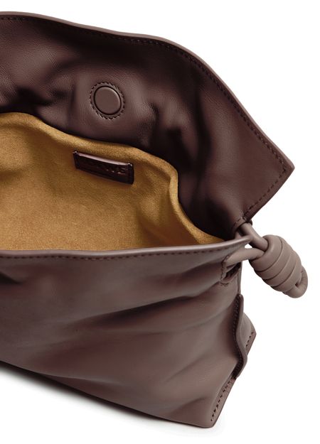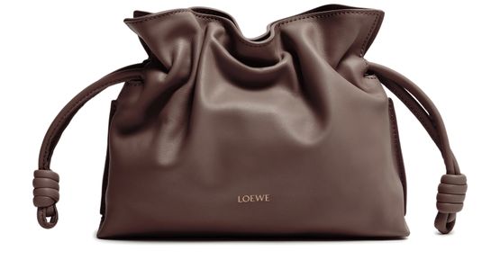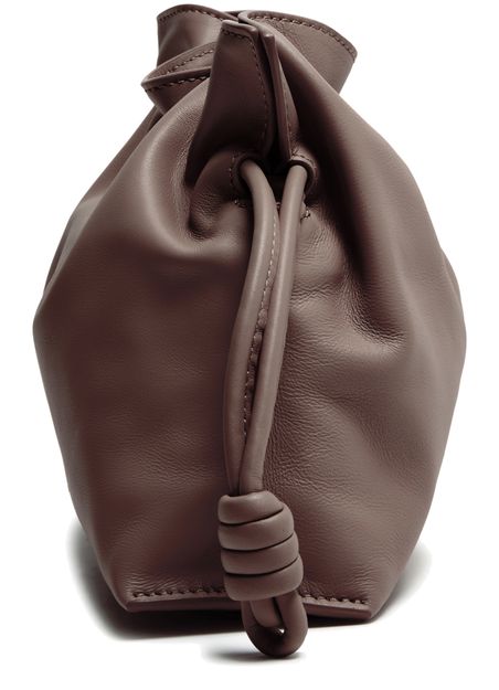 Genieße Loewes clutch mit doppeltem Signaturdetail Pebble Anagram, gefertigt aus glattem Leder für einen edlen Look. Das große Innenfach und der Kordelzug-Verschluss verbinden Stil mit Funktion, während das goldfarbene Logo auf der Vorderseite einen modernen Akzent setzt.