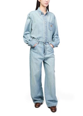 Entdecke die Mokassins Bateau von Miu Miu, wo Eleganz auf Komfort trifft. Diese Mokassins zeichnen sich durch ihre runde Spitze und ein logo-bedrucktes Innenfutter aus. Das flache Design, akzentuiert durch ein silbernes Finish und das Logo auf der Zunge, sorgt für einen stilvollen und modernen Look, perfekt für jeden Anlass.
