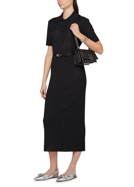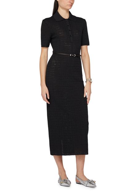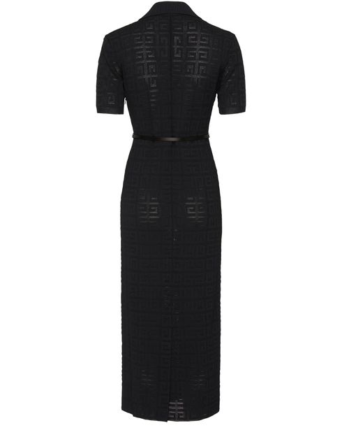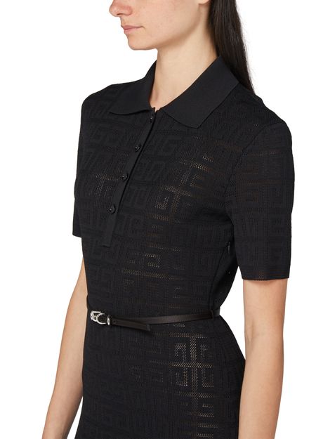 Beschreibung : kurze ärmel, knöpfe auf der vorderseite, knopfverschluss, midikleid, etikett mit logo auf der rückseite, monogramm der marke, allover-logo, gegürtete taille, polokragen.