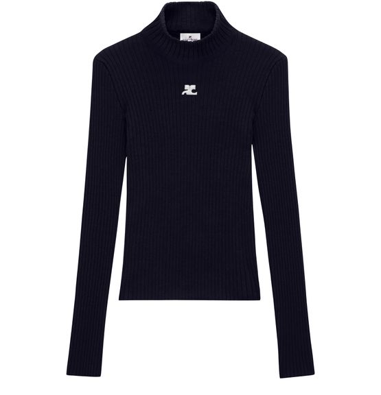 Genieße das lange Rippstrick-Top von Courreges mit stilvollem Stehkragen und langen Ärmeln. Das aufgestickte Logo auf der Brust setzt ein dezentes Statement. Die strukturierte Optik macht dieses Modell vielseitig kombinierbar – perfekt für jeden Anlass.