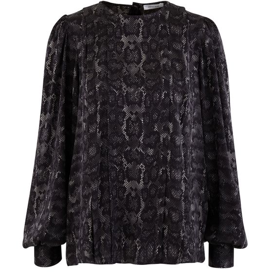 Das Top Renee von Anine Bing greift das Schlangenmuster auf. Sein Rundhalsausschnitt und sein ultra-fließender Schnitt versorgen Ihren Style mit Eleganz und Relief.