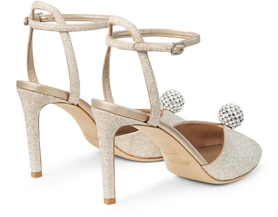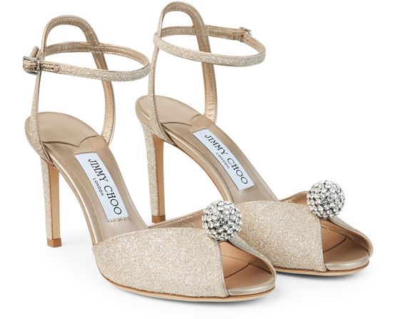 Genieße die sandalen aus paillettenbesetztem tüll von Jimmy Choo mit peeptoe und knöchelriemen mit schnalle. Der stilettoabsatz und der mit kristallen besetzte riemen sorgen für einen glamourösen Auftritt, während das aufgedruckte logo und das gold-finish stilvolle Akzente setzen.