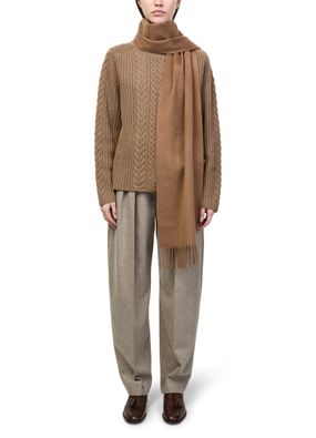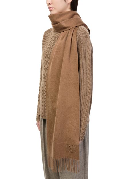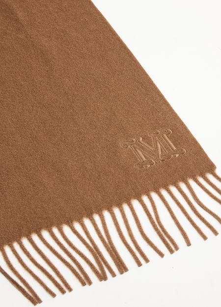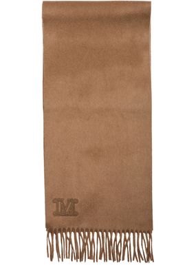 Genieße den wollschal mit ausgefransten rändern von Max Mara, veredelt durch ein gesticktes logo. Dieses moderne Accessoire setzt stilvolle Akzente und verleiht jedem Outfit eine elegante Note.