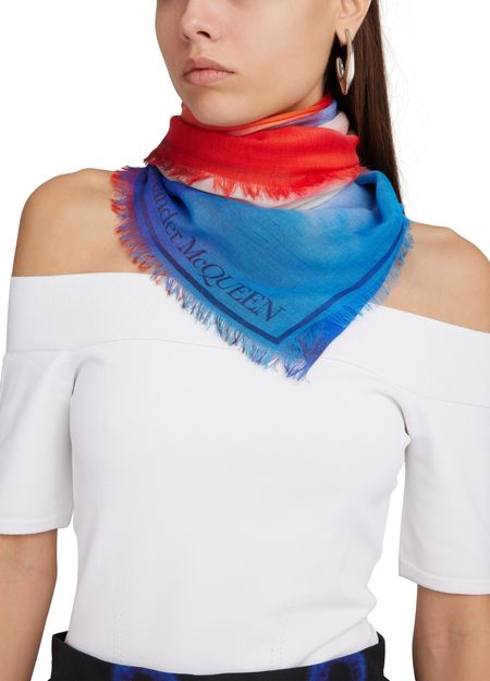 • Beschreibung : Eckige Form, markenmotiv, logo auf der Seite, ausgefranste Ränder, kann auf verschiedene Arten getragen werden.
