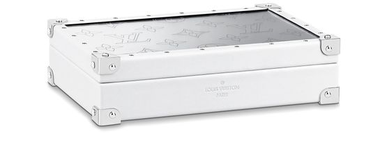 Diese von Koffern inspirierte Schmuckbox besitzt die perfekte Größe für Reisen und spiegelt damit den nomadischen Geist des Hauses Louis Vuitton wider. Die Außenseite ist in einem eleganten, verspiegelten Material gefertigt, welches das Monogram-Motiv als Relief zeigt, während das Innere über einen Spiegel mit eingravierter Monogram-Blüte und ein Futter aus weichem Samt verfügt. Herausgenommen offenbart das obere Polster ein Schubfach, das sich ebenfalls entnehmen lässt....