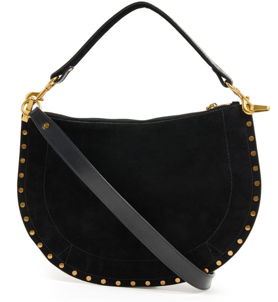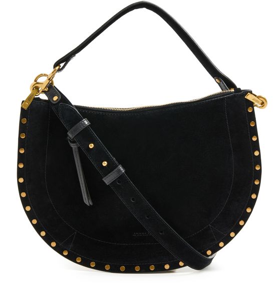 Entdecke Isabel Marants Tasche Oskan soft zipped, ein Kunstwerk aus Veloursleder. Diese Hobo-Tasche verfügt über einen einzelnen Griff und einen dünnen, einstellbaren, abnehmbaren Trageriemen für vielseitiges Tragen. Mit Nietendetails und einem Reißverschluss bietet sie ein einzelnes Fach mit Innentasche, alles mit Gold-Finish.