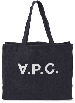 Die Shopping Bag Daniela stammt aus dem Modehaus A.P.C. Die weiche Denimtasche bietet viel Stauraum und zwei praktische Henkel. Sie ist mit den Markenbuchstaben in Kontrastoptik versehen.