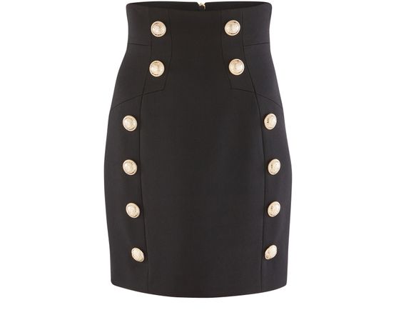 Dieser kurze Wollrock von Balmain ist sehr trendig. Der körpernahe Schnitt mit einem Hauch von Glamour und die zwölf seitlichen Knöpfe muss man einfach lieben. Wählen Sie Ihren Stil von blau bis weiß über schwarz.