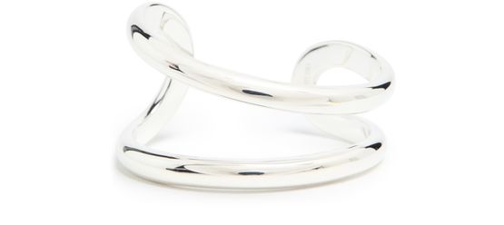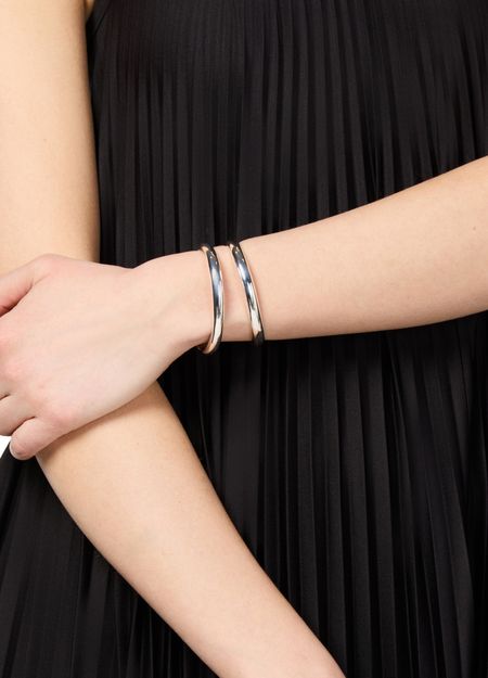 Entdecke das Armband Maggie von Lie Studio mit seiner silbernen Oberfläche und kunstvoll graviertem Logo. Dieses elegante Accessoire verleiht jedem Outfit einen Hauch von Raffinesse.