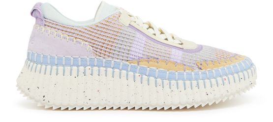 Genieße Chloes Sneakers Nama, gefertigt aus durchbrochener Strickstruktur und glattem Leder für einen modernen Look. Runde, geschlossene Zehenpartie, Schnürung mit Riemen und sichtbare Nähte sorgen für Komfort. Die kontrastfarbene Sohle und das Logo auf der Rückseite setzen stilvolle Akzente.