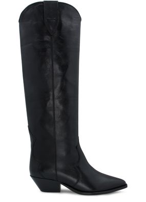 • Beschreibung : Stiefel aus Glattleder, spitz zulaufend, grafische Cut-outs, hoher Schaft aus dickem Leder, schlaufen für komfortables Anziehen, ferseneinlage.