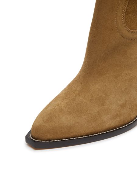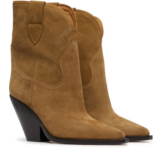 • Beschreibung : Veloursleder, karree-Spitze, forme affinée, sichtbare Nähte, slip-on-Design, doppelte Schlaufe für komfortables Anziehen, abgeschrägter Absatz.