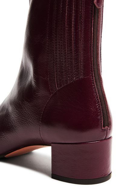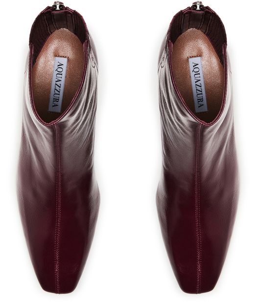 Entdecke Aquazzuras Stiefeletten Saint Honore 35 aus glattem Leder. Der mittlere Blockabsatz und die spitz zulaufende, geschlossene Spitze schaffen eine raffinierte Silhouette. Sichtbare Nähte und eine innensohle mit logo bieten besondere Details. Mit einem reißverschluss hinten verbinden diese Stiefel Stil und Funktionalität.