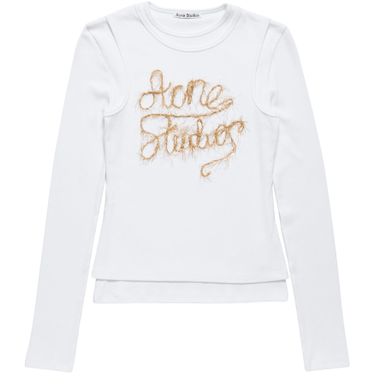 Genieße das rundhalsausschnitt lange ärmel top von Acne Studios mit gesticktem logo auf der vorderseite. Die klare Silhouette und das angenehme Material machen es vielseitig kombinierbar – perfekt für entspannte Outfits oder stilvolle Akzente im Alltag.