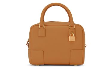 Diese Tasche Amazona 19 Square ist mit ihren Griffen und ihrem abnehmbaren Schulterriemen vielseitig einsetzbar. Das Modell hat weiche und abgerundete Linien und ist mit einem kleinen Vorhängeschloss verziert, das mit dem emblematischen, eingravierten Motiv des Hauses Loewe versehen ist.