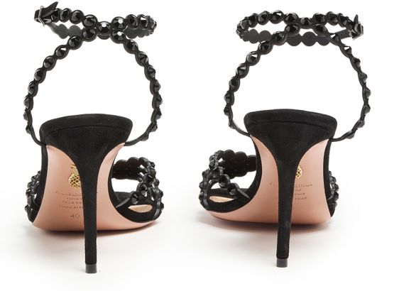 • Beschreibung : knöchelriemen, aufgedrucktes logo, sichtbar nähte, perlendetails, hohe absätze, stilettoabsatz, runde zehe, offen.