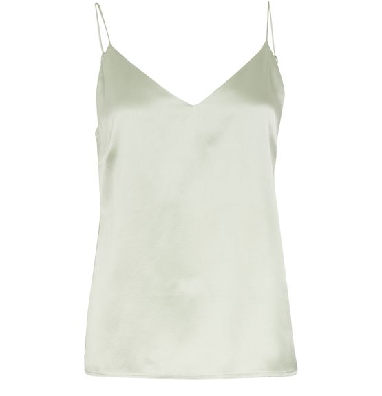 Das Caraco-Top Gwyneth wurde von Anine Bing entworfen. Das einfarbige fließende Oberteil wurde aus Seide gefertigt. Es zeichnet sich durch seine dünnen Träger und die Spitzendetails aus.
