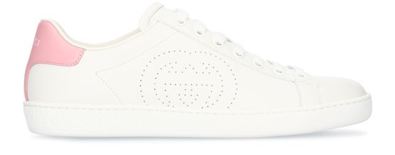 Mit klassischen Linien werden die Turnschuhe New Ace von Gucci aus Kalbsleder auf der Seite mit dem Doppel-G des italienischen Modehauses bestickt.