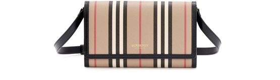 Diese Tasche Hannah der Marke Burberry zeigt stolz das ikonische Streifenmotiv der Marke in seiner Gesamtheit. Ihre Brieftaschenform mit einem Schulterriemen macht sie leicht und angenehm zu tragen.