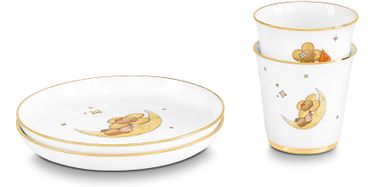 Die handgemalten Illustrationen auf dem Vivienne Moon Teller- und Tassen-Set zeigen das verspielte Louis Vuitton Maskottchen auf einer Erkundungstour im Weltraum. Jedes der Modelle aus erlesenem Porzellan ist mit Symbolen des Hauses Louis Vuitton verziert, darunter Monogram-Blüten und eine LV Circle Signatur. Goldfarbene Ränder akzentuieren das Geschirr auf elegante Weise. Ein ideales Geschenk.