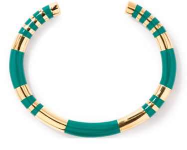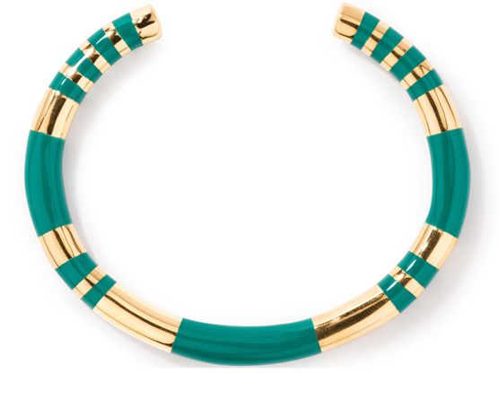 Das Modehaus Aurelie Bidermann bietet innovative Kreationen mit modernen Linien mit dem Bildnis des Armbands Positano. Mit seinen sauberen, gestreiften Details und seinen leuchtenden Farben ist es ein wahres, zeitloses Schmuckstück.
