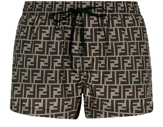 Badeshorts mit elastischem Taillenbund und Tunnelzug. Aus Stoff mit FF-Signatur.