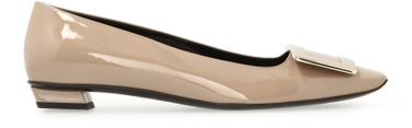• Beschreibung : Karree-Spitze, raffinierte Form, graviertes Logo, symbol des Modehauses, metallic-Finish, innensohle mit Logo.