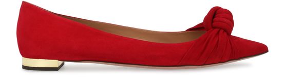 Die Ballerinas Kiki sind von Aquazzura signiert. Diese vorne spitz zulaufenden Schuhe sind mit einem kleinen, flachen und goldfarbenen Absatz versehen. Diese Ballerinas werden vorne durch einen Schleifeneffekt geboostet.