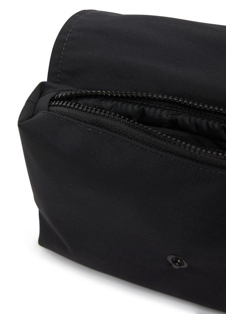 • Beschreibung : breiter riemen, zum tragen um hüften oder taille, einzelner griff, bauchtasche, druckknopf-verschluss, klappenverschluss, reißverschluss, patchdetail, einzelnes fach, logoapplikation.