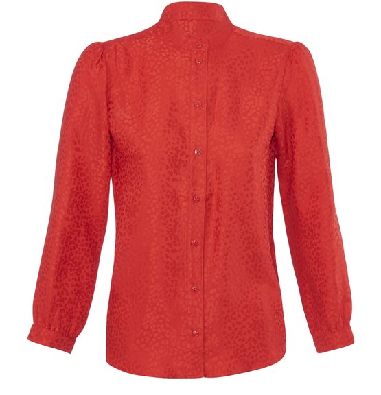 Mit einem lebhaften Farbton und einer verkürzten Linie schmeichelt die von A.P.C. entworfene Bluse Aline der Silhouette und wird von einer Jeans mit hoher Taille begleitet, um einen femininen Look zu betonen.