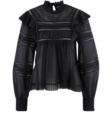 Dank einer subtilen Kombination aus durchbrochenen Rüschen und zarten Schnitten unterstreicht die Bluse Viviana von Etoile Isabel Marant eine feminine Optik, die mit einer romantischen Note personalisiert wurde.