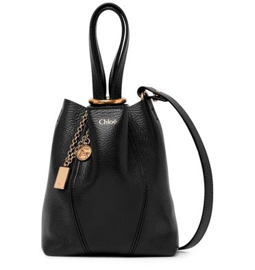 Genieße die Cabas-Tasche aus genarbtem Leder Chloe Spin, gefertigt aus edlem genarbtem Leder mit goldfarbenen Kettenanhängern. Signatur-Sattelstiche und ein Logo in goldfarbenen Buchstaben setzen Akzente, während ein dünner, verstellbarer Kettengurt und der Druckknopf-Verschluss stilvolle Funktionalität bieten.