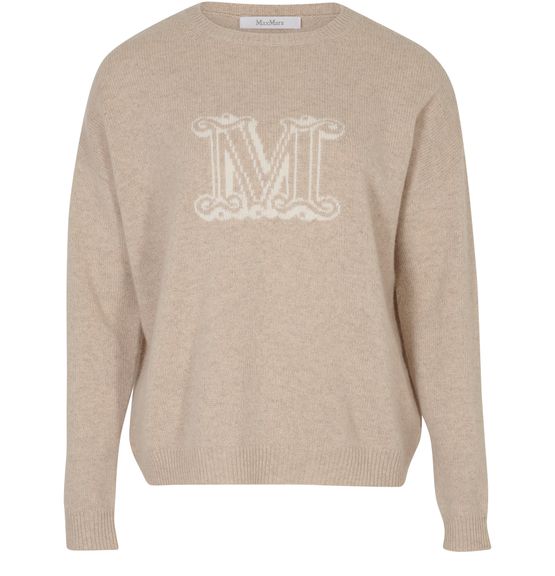 Das Modehaus Max Mara verleiht dem Kaschmir-Pulli Cannes einen unnachahmlichen Hauch Fantasie. Er ist sehr komfortabel und kann zu einem Lederrock und Stiefeletten getragen werden.