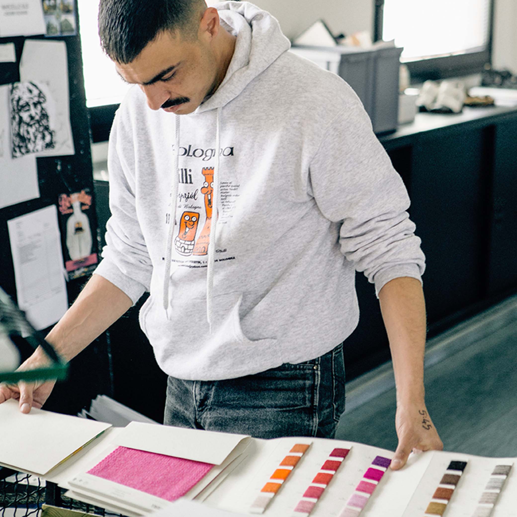 Kleidungsstücke entdecken“Die unbändige Energie der Markthallen hat mich beim Design dieses Looks inspiriert: die Magliano-Vision einer Streetwear-Garderobe. Für mich ist dieses 24S-Projekt die perfekte Gelegenheit, unsere Arbeit für den LVMH-Preis auszuweiten.”
