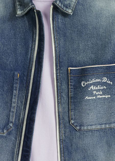 Beschreibung : Christian Dior Atelier Stickerei auf Brusttasche und Rückseite, webkante, 2-Wege-Reißverschluss mit Dior Gravur an den Schiebern, aufgesetzte Brusttasche, gerader Saum, 100 % Baumwolle.