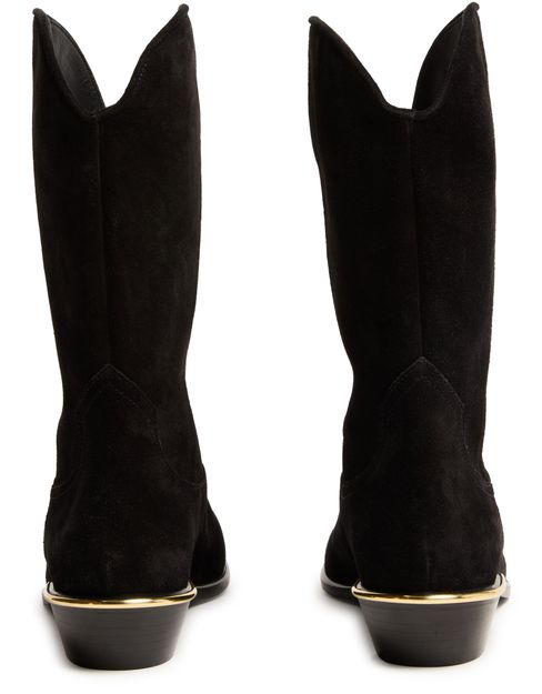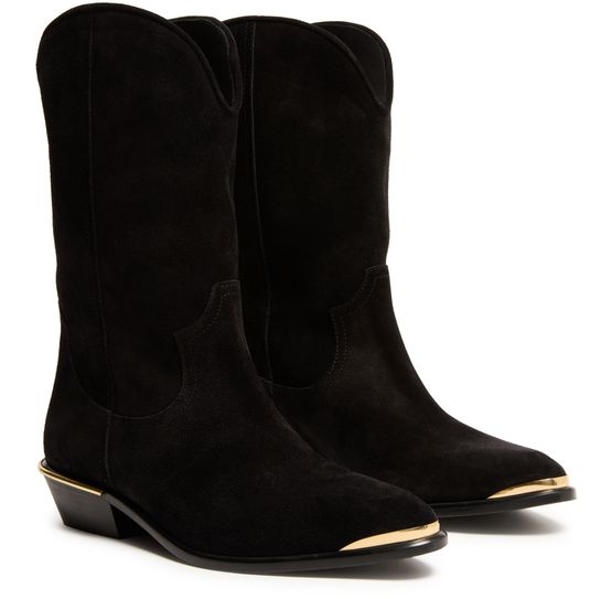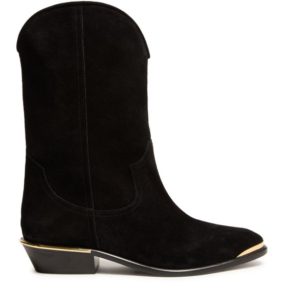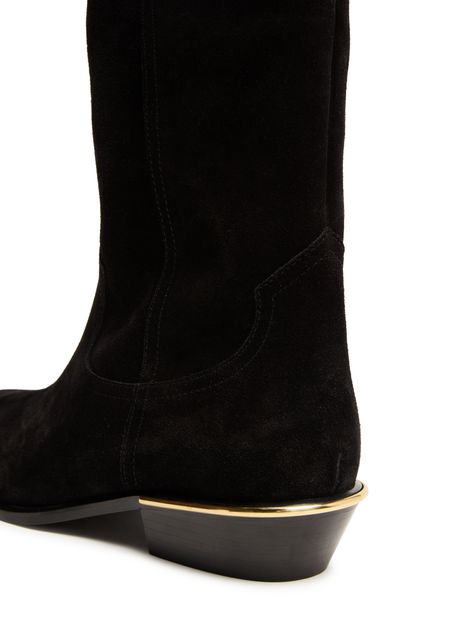 Erlebe Isabel Marants Cowboystiefel Elbana aus luxuriösem Veloursleder. Diese Stiefel zeichnen sich durch eine geschlossene, spitz zulaufende Zehenpartie und einen stilvollen Blockabsatz aus, ideal für einen modernen Look. Die sichtbaren Nähte und der abgeschrägte Absatz verleihen eine zusätzliche Raffinesse, ein Muss für jede modische Garderobe.