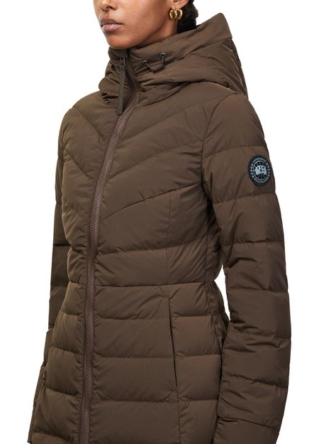 Erlebe die Daunenjacke Clair von Canada Goose – ein langes Puffer-Design mit polstertextur und klassischem Kragen. Reißverschluss und seitentaschen sorgen für Funktionalität, während der moderne Look vielseitige Stylingmöglichkeiten für Alltag und besondere Anlässe bietet.