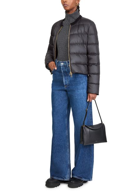 Entdecke Monclers Mauvezin-Daunenjacke mit ihrem regular fit und der crop-Länge, die eine stilvolle Silhouette schaffen. Das kragenlose Design und die polstertextur bieten sowohl Modernität als auch Wärme. Die langen Ärmel und der reißverschluss erhöhen die Praktikabilität, perfekt für vielseitige Stylings von lässigen Spaziergängen bis hin zu eleganten Abenden.