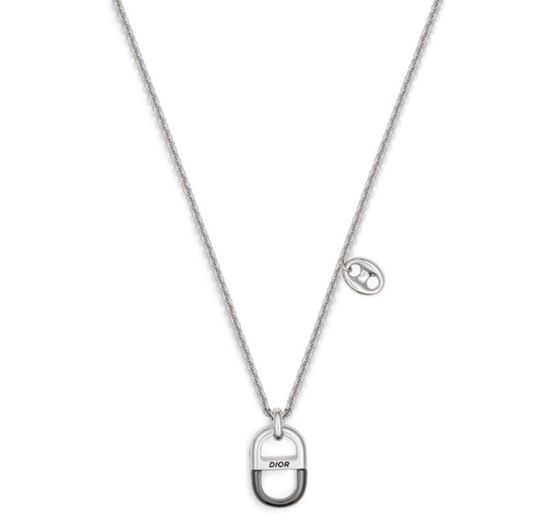 Erlebe Dior's Dior 8 Halskette mit Anhänger—ein Kunstwerk aus Messing mit silber- und ruthenium-Finish. Mit gravierter Dior Italic-Signatur und einem offenen CD Icon Detail am Ende der verstellbaren Kette, ist diese Halskette ein echtes Statement-Piece. Der Verschluss erfolgt über einen Karabinerverschluss.