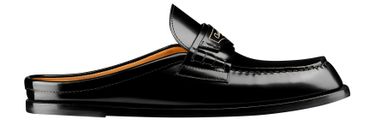 Erlebe Dior Boy Mules, die mit dem goldfarbenen Christian Dior Paris-Schriftzug auf der Vorderseite beeindrucken. Die schwarze Gummisohle, verziert mit einem Stern, symbolisiert Christian Diors Glücksbringer. In Italien gefertigt, bieten sie Stil und Komfort für den modernen Modebewussten.
